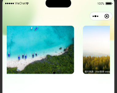 <swiper indicator-dots="{{indicatorDots}}" class="swiper-list" next-margin="-60rpx" autoplay="{{autoplay}}" interval="{{interval}}" duration="{{duration}}"> <block wx:for="{{background}}" wx:key="*this"> <swiper-item> <view class="swiper-item" style="background-image: url({{item}});"> </view> </swiper-item> </block> </swiper> .swiper-item { border-radius: 20rpx; height: 95%; overflow: hidden; background-size: 100% 100%; margin-right: 60rpx; }