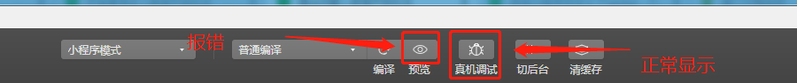 使用预览模式手机调试报错,真机调试就没事,请问什么原因?