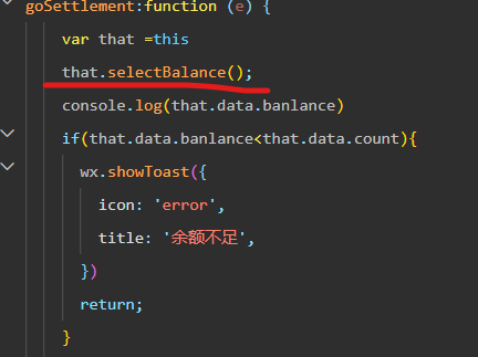 但是,每次执行 that.selectBalance 方法 会比较慢 ,程序直接执行下面的比较语句
