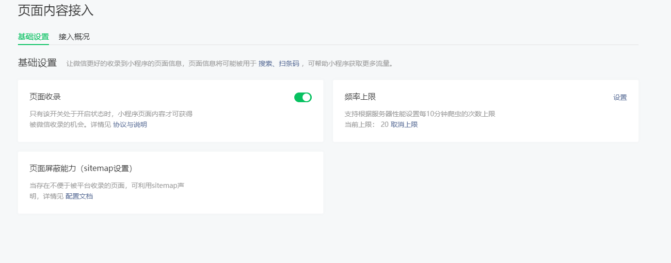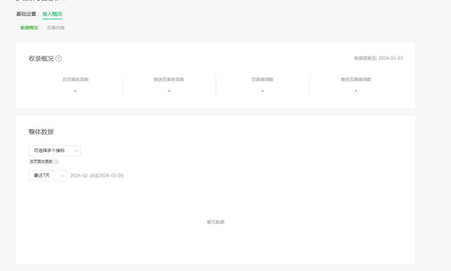 我开启了页面收录,sitemap.json也设置了页面收录,但是接入概况一直为0,什么原因?