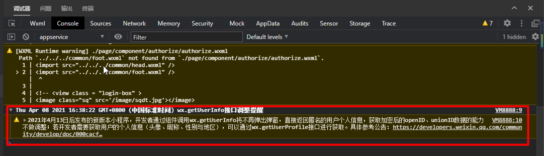 周知:getUserInfo 开发版 & 体验版 已对齐 getUserInfo 匿名表现,正式版将于 4月13日 正式对齐 getUserInfo 匿名表现。请开发者使用 getUserProfile 获取用户信息。开发版 & 体验版 scope.userInfo 调整将于 4月13日 对齐。
