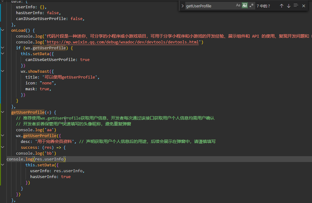 https://developers.weixin.qq.com/miniprogram/dev/api/open-api/user-info/wx.getUserProfile.html#%E7%A4%BA%E4%BE%8B%E4%BB%A3%E7%A0%81
