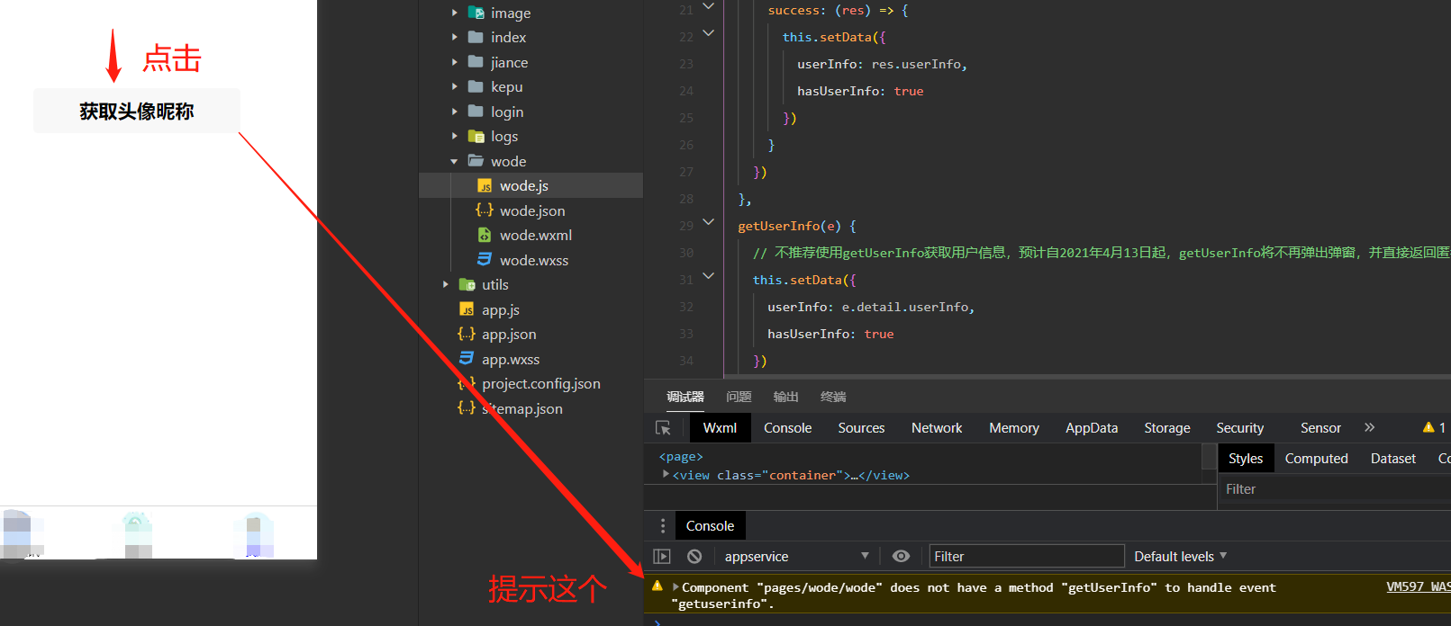 pc微信暂不支持wx.getUserProfile,可以参考示例代码进行兼容
