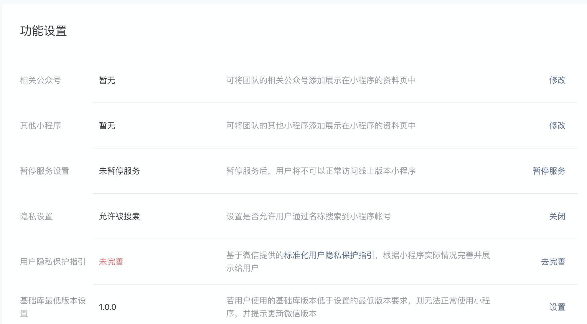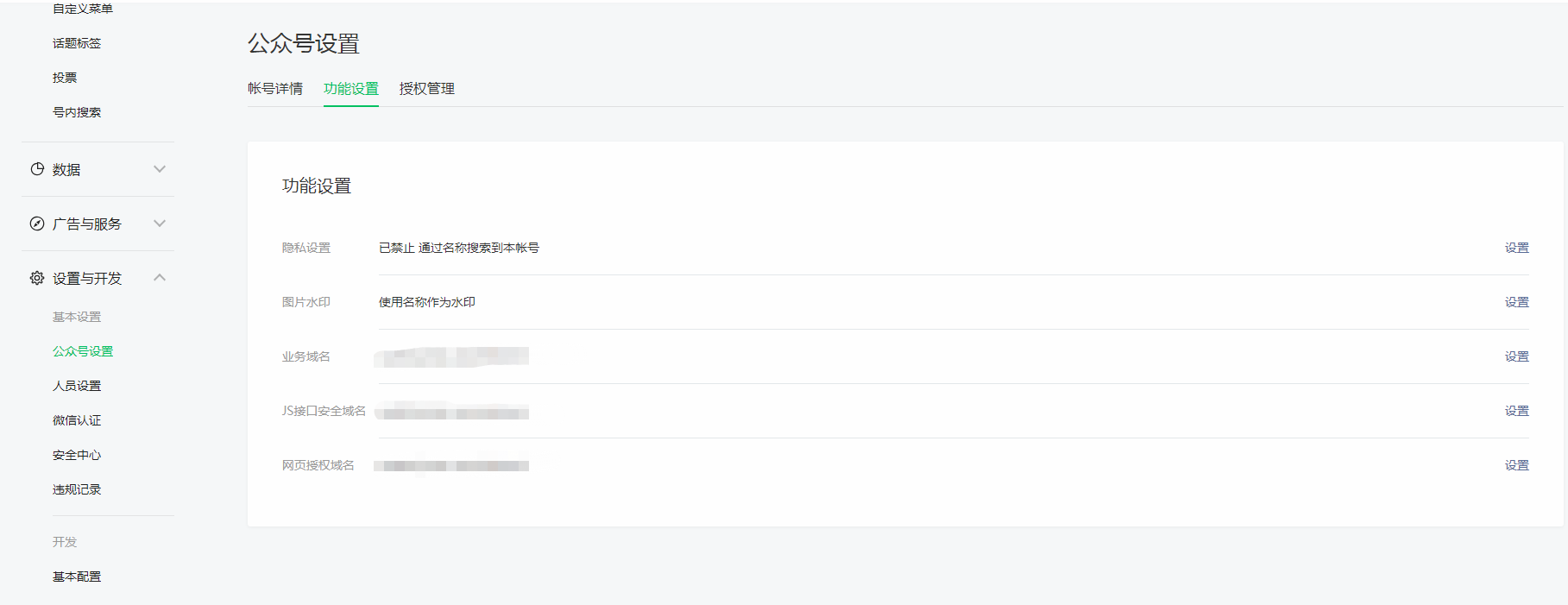 我希望能过H5页面能拉起微信进入小程序,根据“https://developers.weixin.qq.com/doc/offiaccount/OA_Web_Apps/Wechat_Open_Tag.html#21”内的“登录微信公众平台进入“公众号设置”的“功能设置”里填写“JS接口安全域名””。但找不到JS接口安全域名填写的地方。