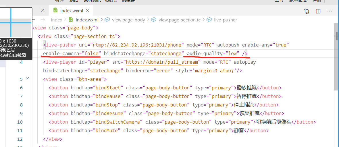 live-pusher里面的enable-camera="false" 和audio-quality = "low"未生效,是因为什么原因?