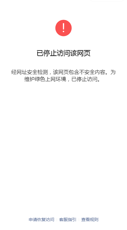 你好,域名(wiselnv.top)已备案,且业务合法合规,微信打开分享出去的网页提示 “网页存在安全风险,为维护绿色上网环境,已停止访问。”,烦请帮我看看,谢谢。