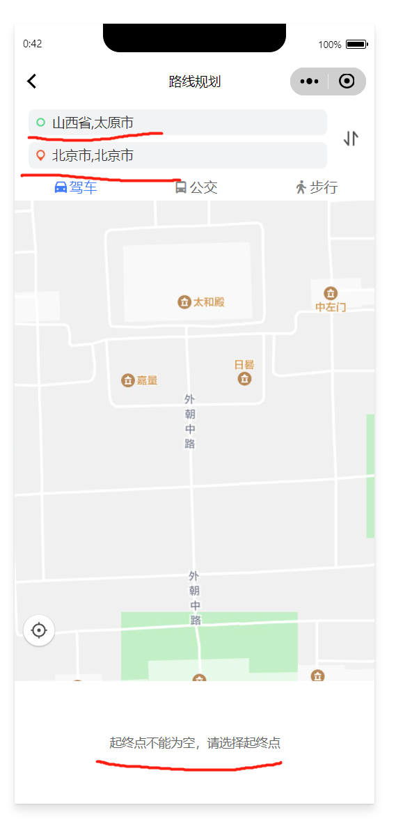 请问下,通过二级省市联动设置出发地址和目的地址,进入该页面,能否做到不用填经纬度就可以实现导航功能