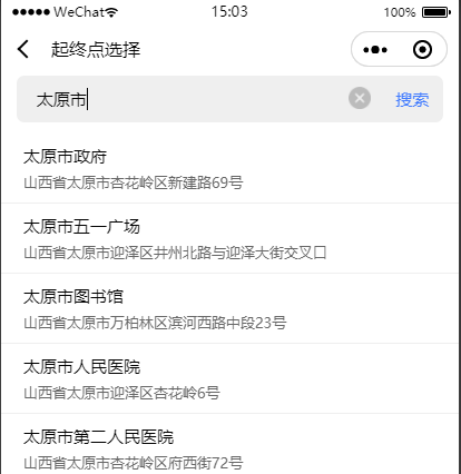 出发地点和目的地址可以选择后进入该界面,以地点是否可选为准。