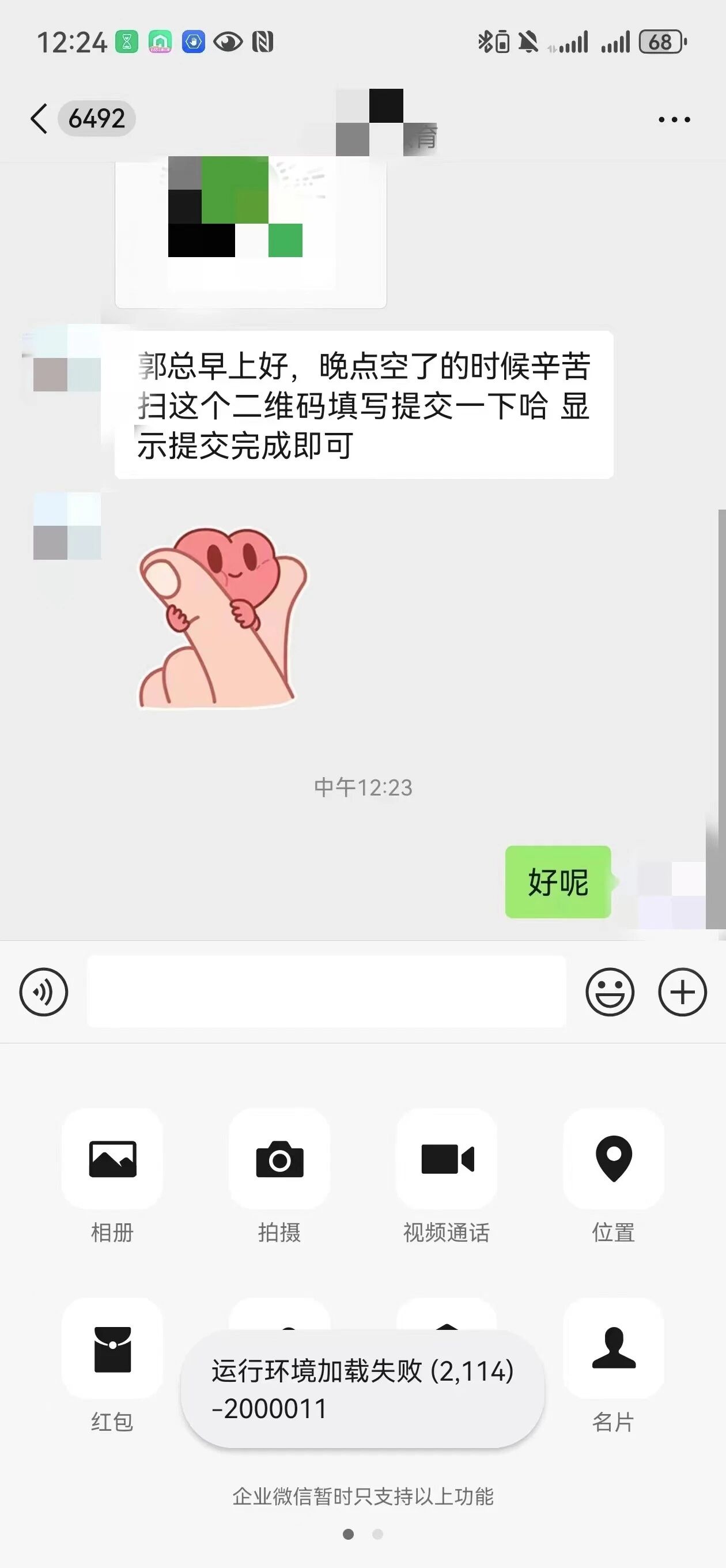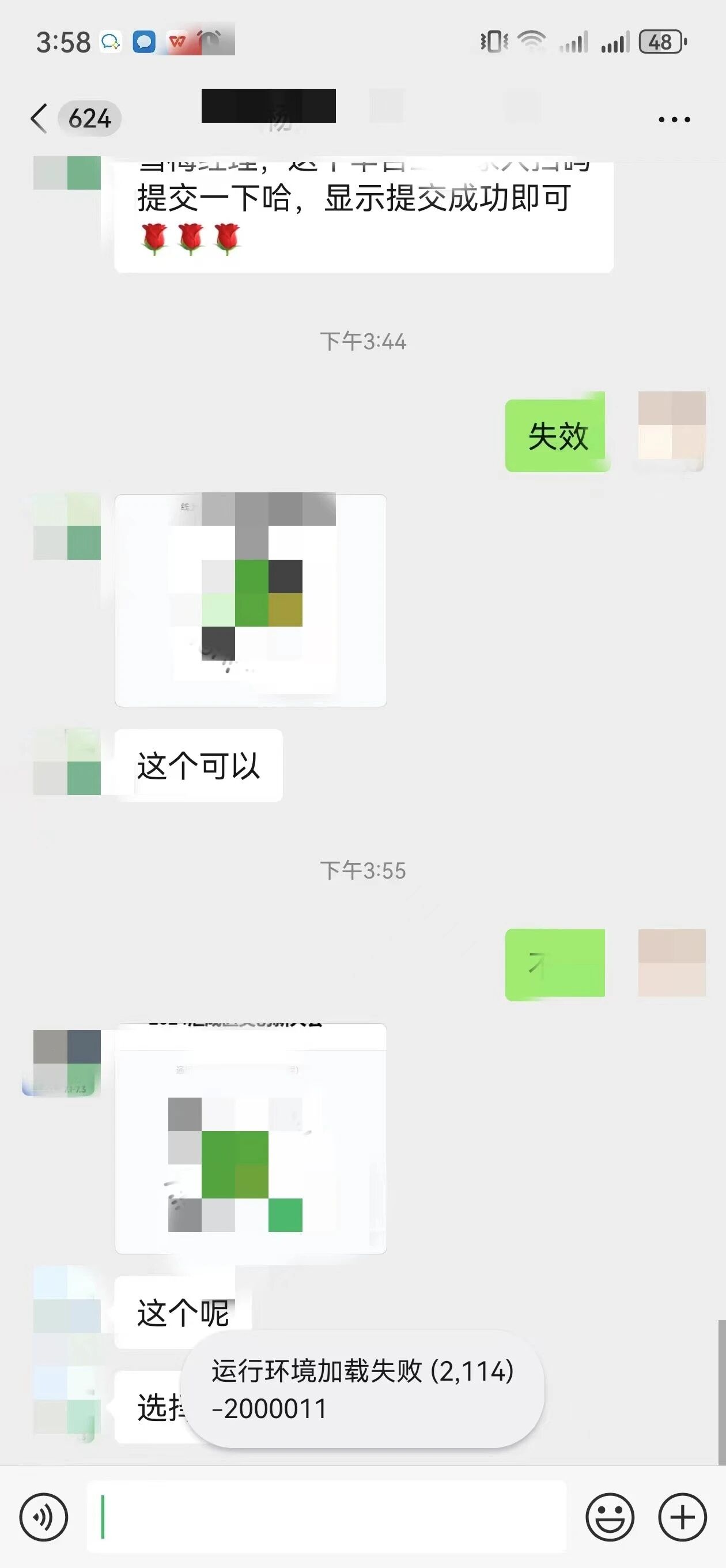 多名客户出现小程序启动运行环境加载失败(2,114) -2000011 这个问题,都是扫描小程序二维码打开时或点开分享链接时。ios与安卓均有,小程序的appid为:wx43d5581e9936dcff。