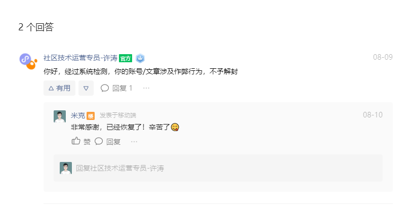 但是诡异的是,我再去访问之前的帖子以后,工作人员的回复变了,变成我账号/文章有作弊行为,这个对于喜爱公众号的我来说,很煎熬,不知所措。辛苦再帮我审核一下呢,因为距离上次恢复,我总共就发布了几篇文章,刚刚仔细看了这几篇文章都是正常的内容,真不知道哪里违规。