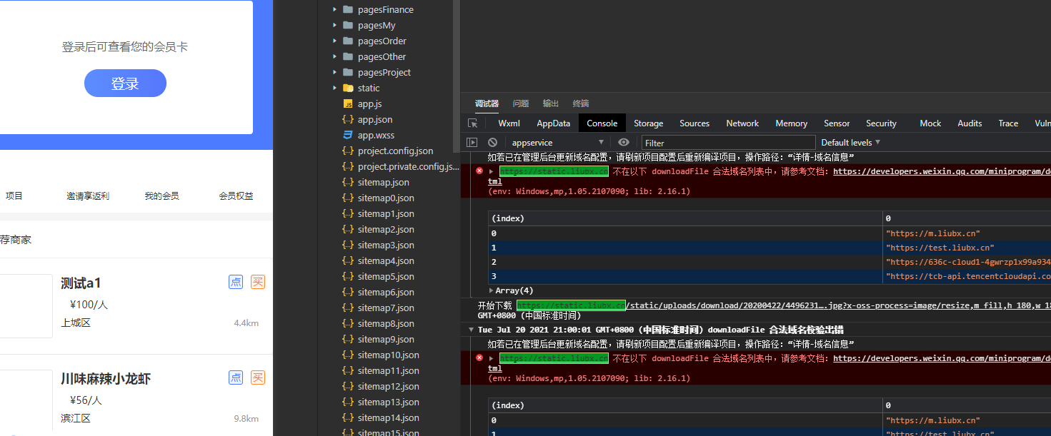 1.是不是配置域名的小程序并非开发的小程序,检查appid是否一致。
