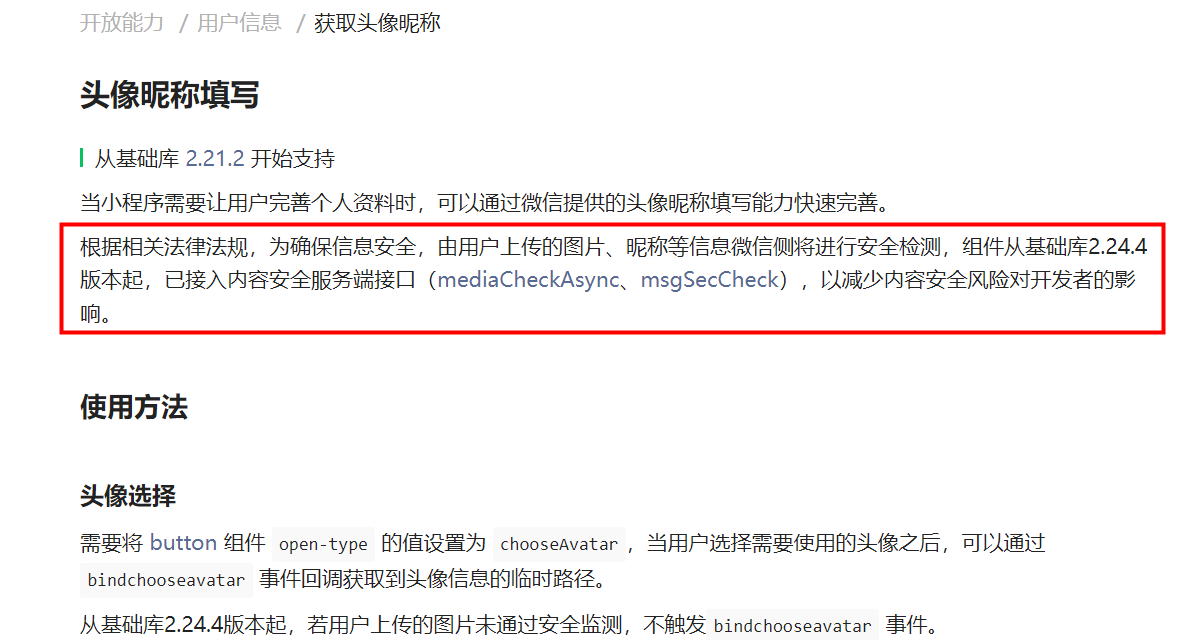 open-type chooseAvatar 选择头像组件会自带 图片会安全检测吗?还是说要自己检测图片内容?目前用这个组件能上传色情图片