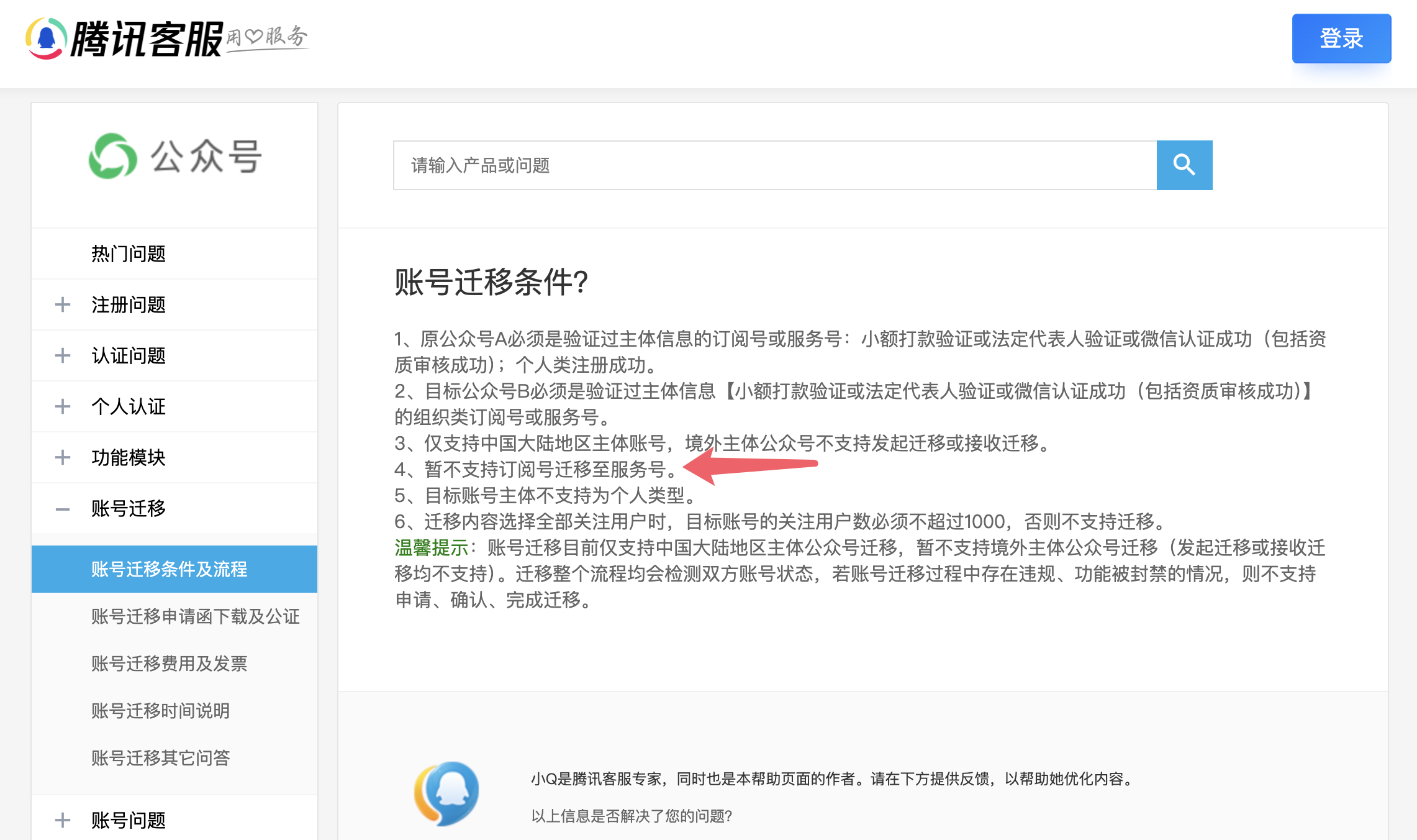 2023年3月,我刚咨询了腾讯客服,这个知识库的内容应该是过时了。客服说只能重新注册一个服务号。