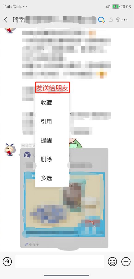 发出来的小程序卡片长按都是没有“发送给朋友”这个选项的