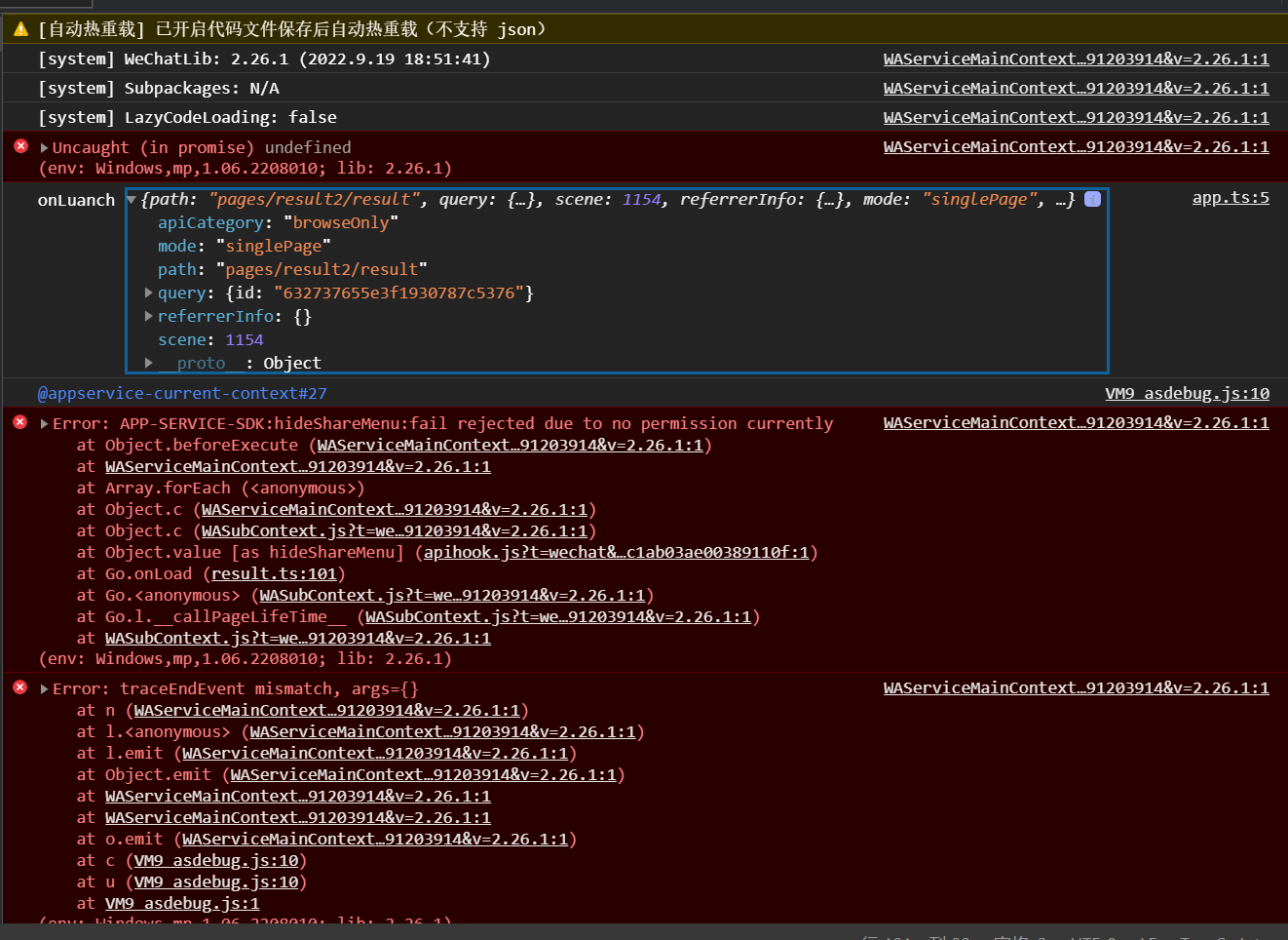 我们也出现了,现象是页面白屏,看log就是这个错误。业务是接入了小程序直播组件,把页面分享出去,别人点进分享链接就报错了,然后点商品回小程序页面都是白屏