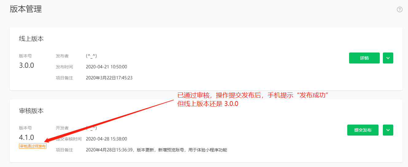 但线上版本还是之前的3.0.0,过了很久刷新网页也没有更新,检查手机的在线版本也还是3.0.0