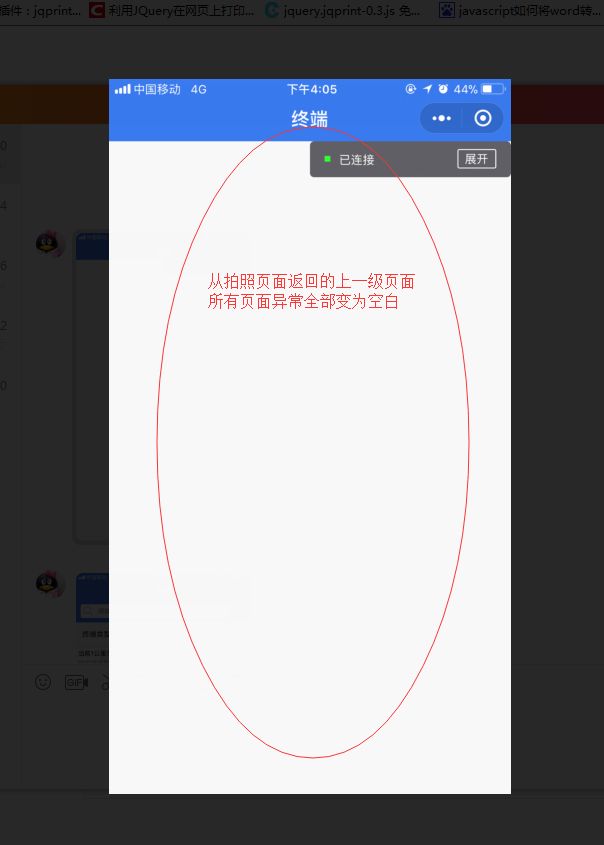 在拍照页面拍照上传后,返回上一级页面导致小程序所有页面异常,变为空白。
