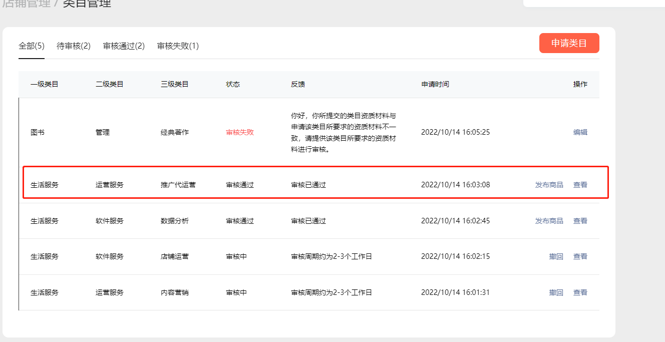 但是我们的对应的类目,已经审核通过了,