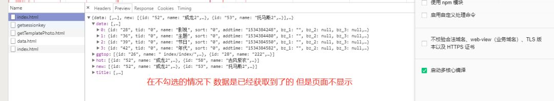 还有,在开发者工具上把不检验合法域名的勾去掉的话也获取不了数据,但是合法域名已经都设置好了。