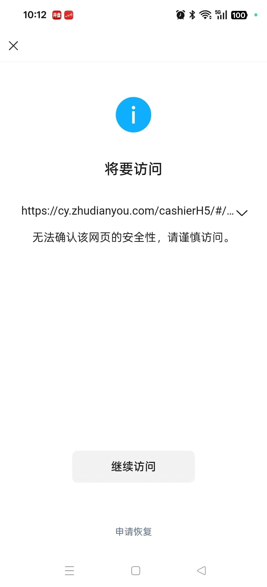 扫普通链接二维码打开小程序https://cy.zhudianyou.com 提示无法确认该网页的安全性,辛苦处理一下!