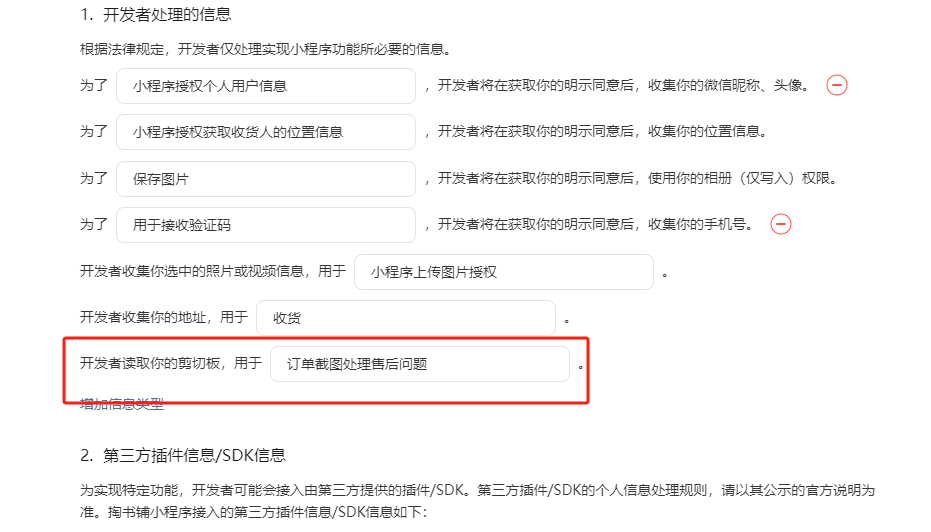 第三方服务商:https://developers.weixin.qq.com/doc/oplatform/openApi/OpenApiDoc/miniprogram-management/privacy-management/setPrivacySetting.html