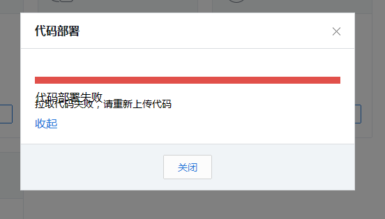 不清楚怎么回事,上传部署失败。提示拉取代码失败,按要求重新上传代码,结果还是如此!