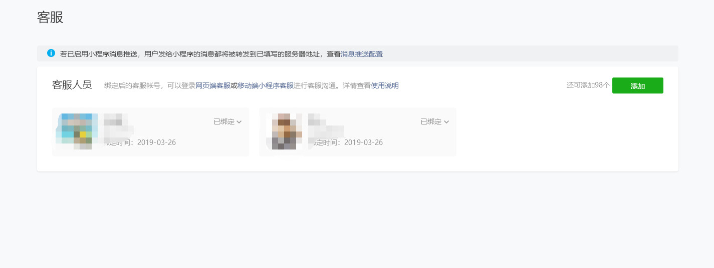 原先有绑定多个客服人员,今早上反馈在登录网页版客服的时候无法选择该小程序客服,截图两个是今反馈问题新添加的人员