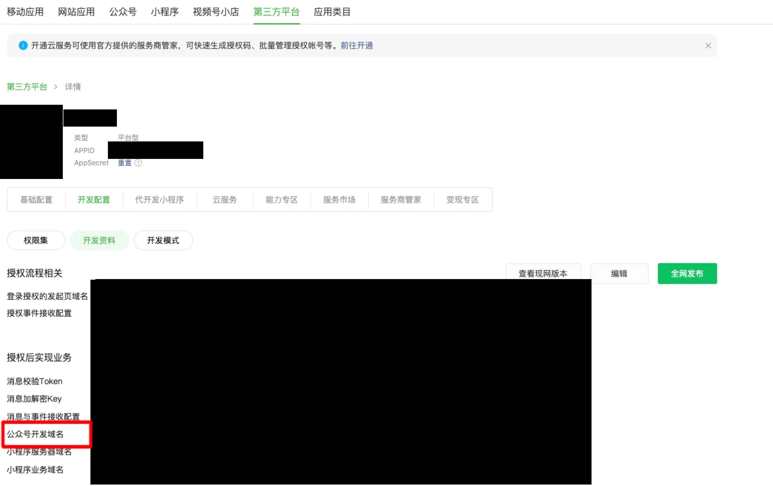 授权给第三方后,第三方平台里这个【公众号开发域名】就相当于【js接口安全域名】