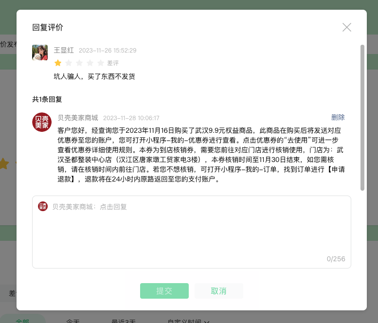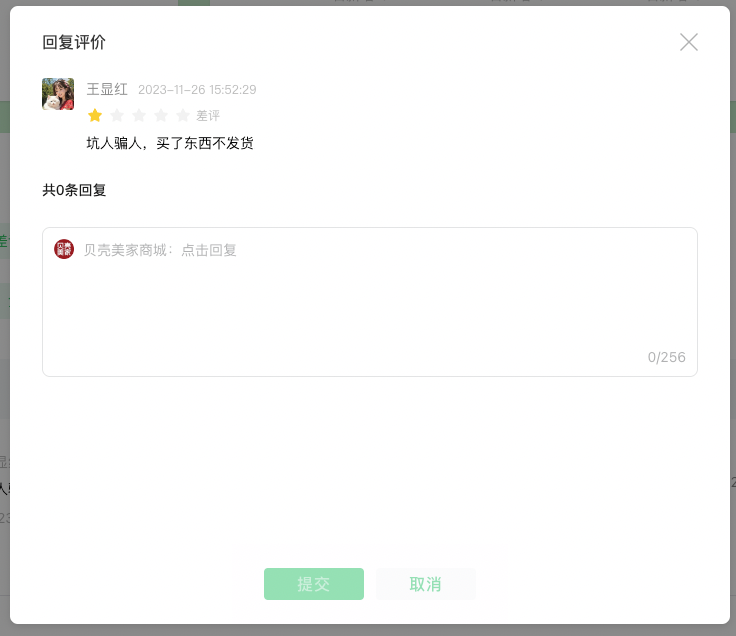 交易评价,点击公开回复,提示回复成功,如图1所示,刷新后,回复记录为空,如图2所示,百分百稳定复现