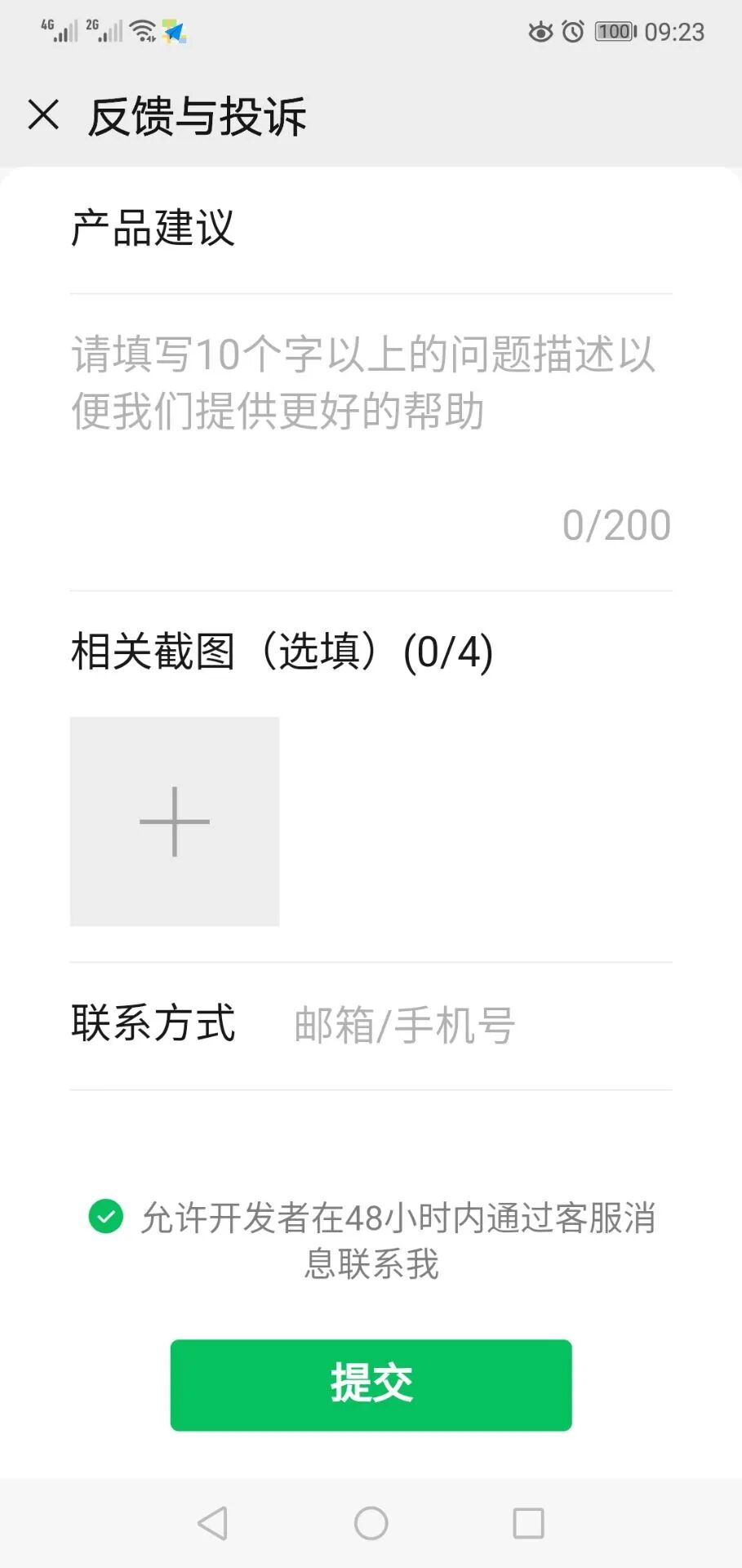 button组件open-type=feedback提交的是功能异常,那么,提交后台的产品建议的open-type是什么?