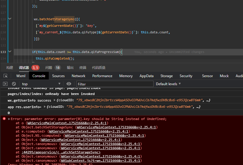 这样的格式,你写的格式不对 wx.batchSetStorageSync([{key: 'key', value: 'value'}])