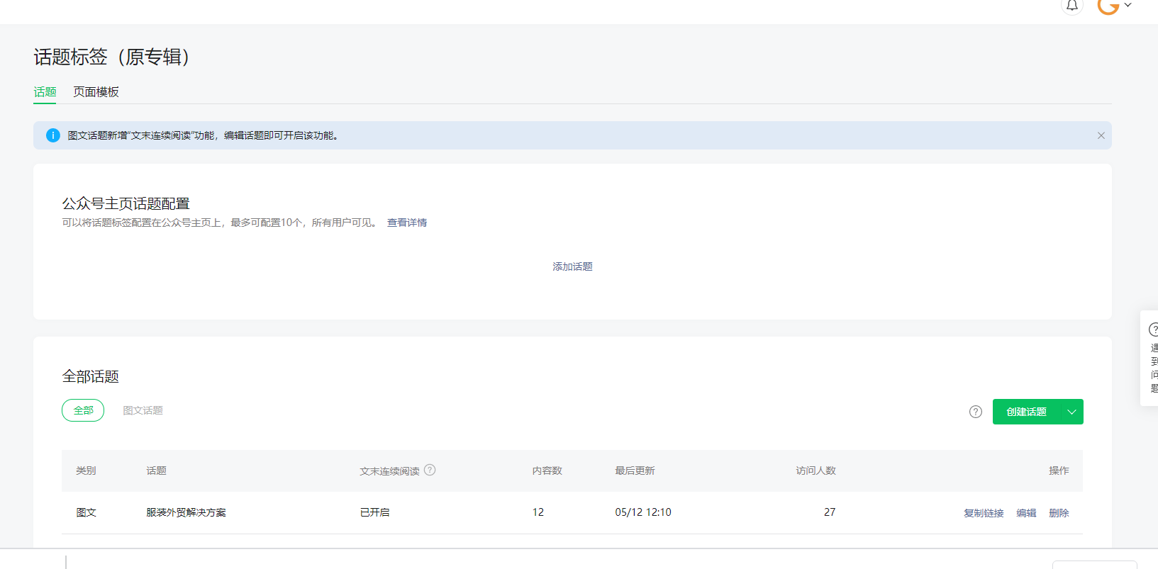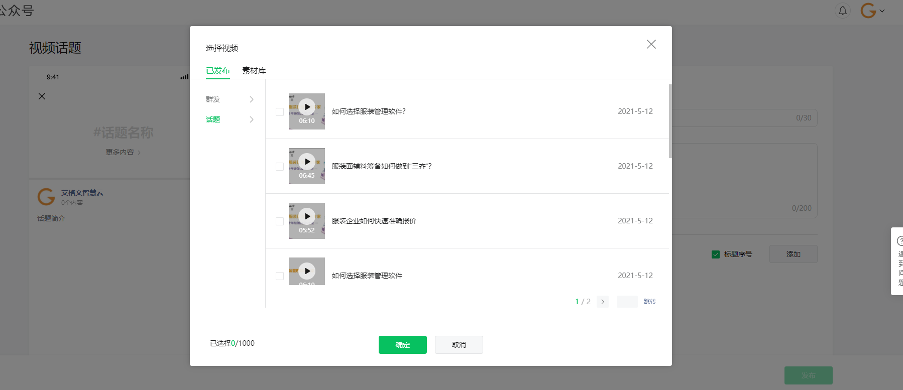 你好,可在公众号首页底部,已群发列表下拉选择发布到话题选项内,删除对应的视频。