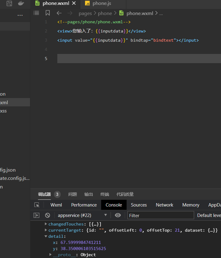 bindtap 是点击事件,输入事件是 bindinput 失焦事件是 bindblur