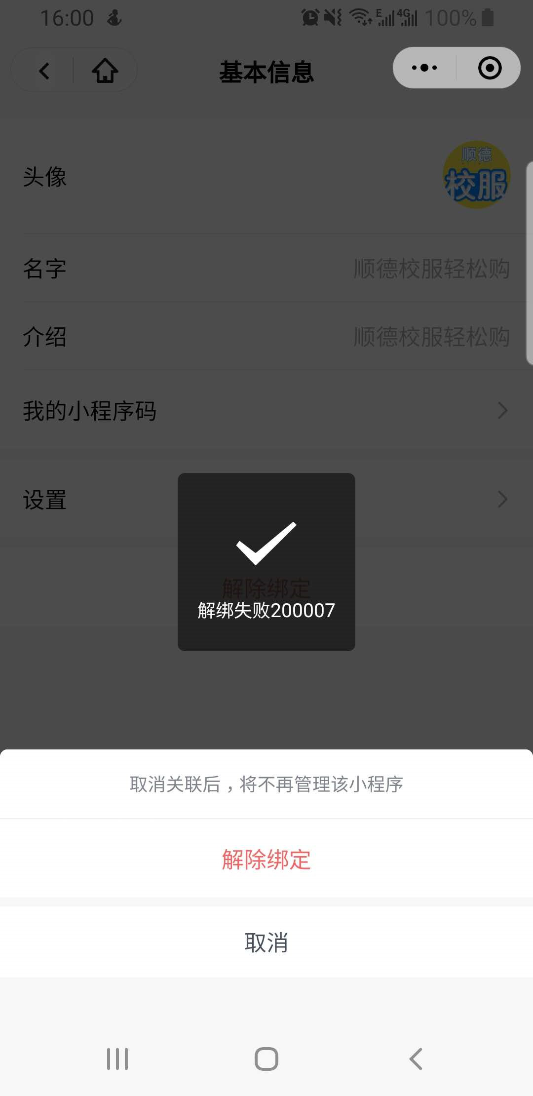 小程序助手,无法操作解除绑定。操作解除绑定时显示错误