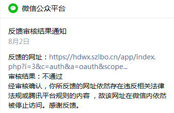 在线等。全部内容已经修改。望解封。不然要给领导炒鱿鱼了T_T。为什么后台反馈一直显示不通过。真的谢谢腾讯工作人员了。