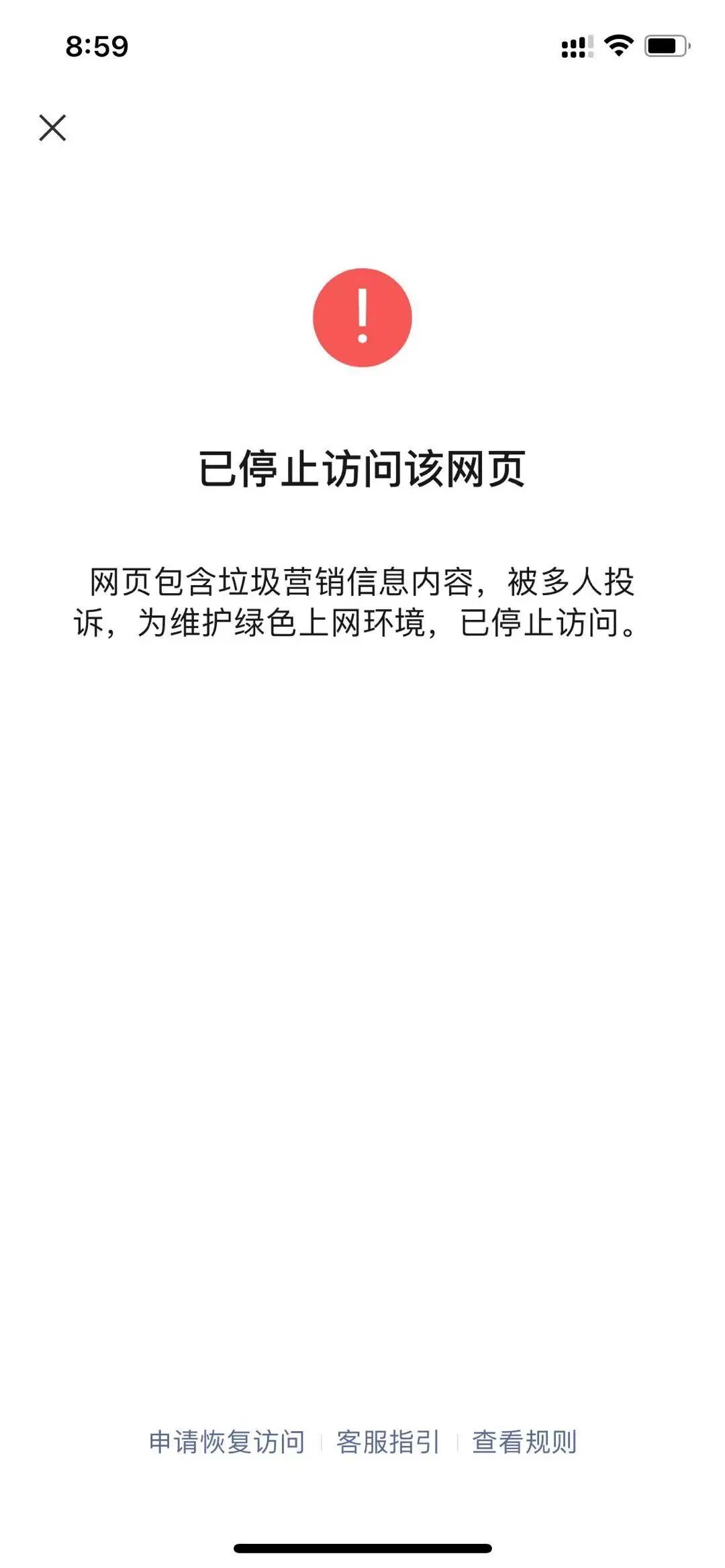 分享链接被微信屏蔽了怎么办,网页包含垃圾营销信息内容,被多人投诉,但明明是刚做出来的原创帖子?