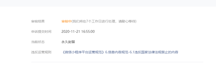 11月20日晚上收到一条小程序违规的消息,并且我查看了违规内容图片,然后我进行申诉,21日下午4点给我解封了,然后我打开小程序5分钟不到,又给我封了,神奇操作,我也看不到哪里违规了,也不知道是不是微信那边出问题了,申诉,打人工都没反应,我公司做了一个网校平台,主要卖一些老师录制好的ps.pr视频剪辑,还有cad等大学生培训类的教程视频,给大学生学习用,大学生提供相关账号,我们在相关学习平台给开通课程来在线学习,我们的课程都是自己弄得,我们有网校:suiyangwx.com。请相关人员给看看,为什么解封了还是打不开。现在最主要的是学员的权益收到了损失,我们很担心。