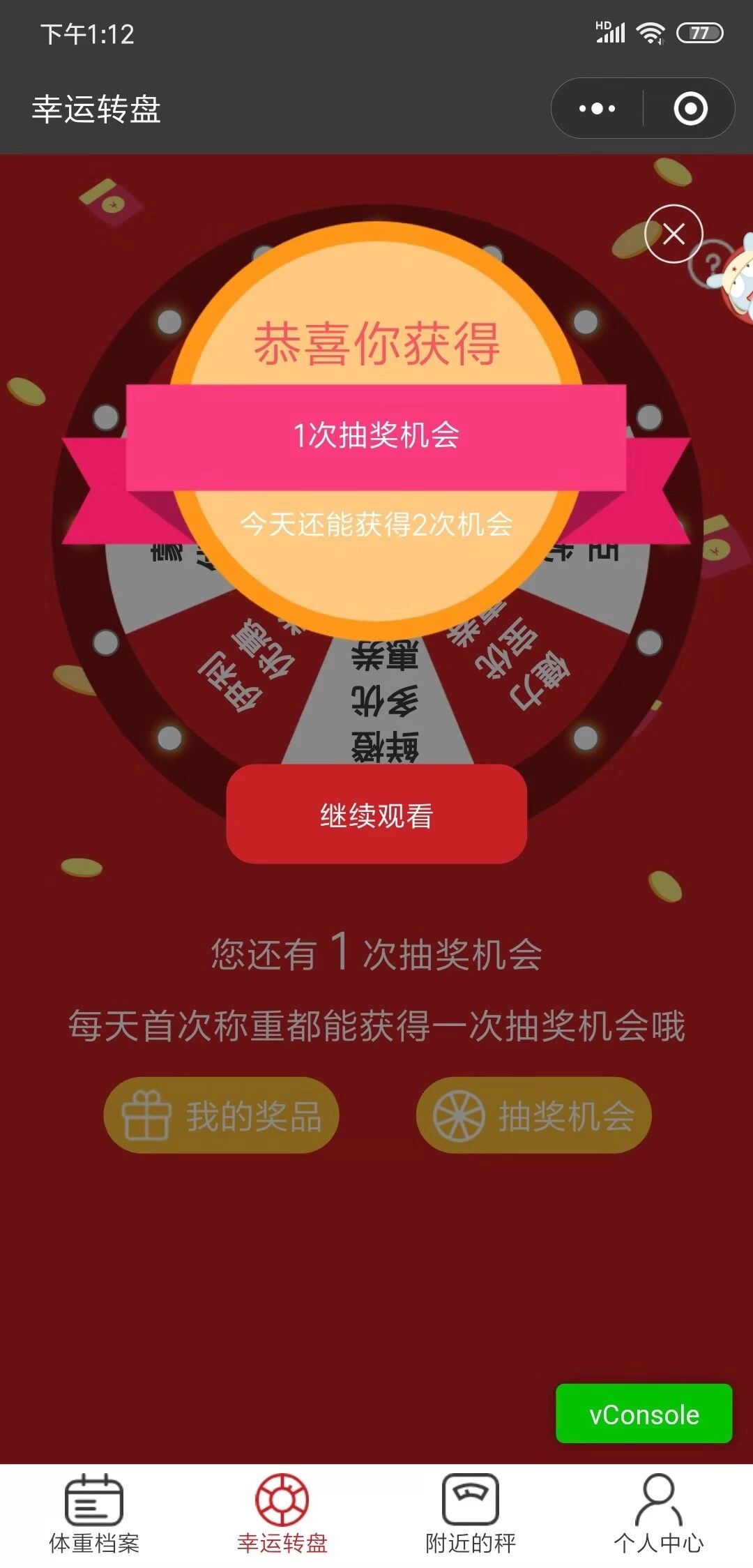 实际上已经有下发奖励(获得1次抽奖机会),且有奖励弹框提示的