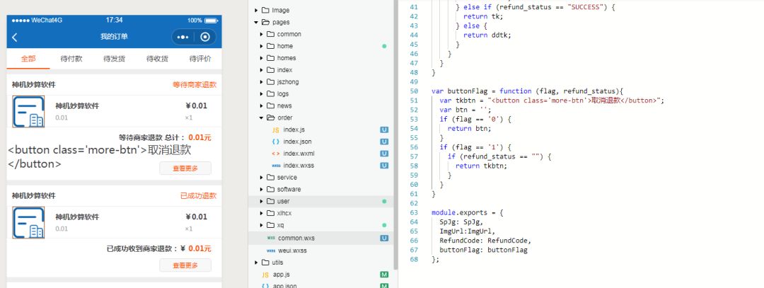 按钮直接在界面上写好,然后通过wx:if来设置是否显示