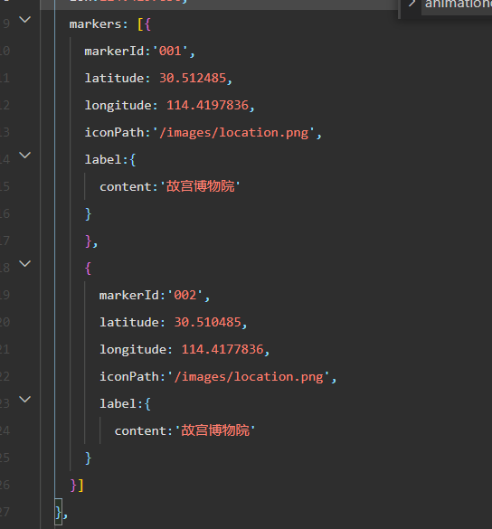 <map latitude="{{lat}}" longitude="{{lon}}" markers='{{markers}}' bindmarkertap="clickme" enable-3D="true"></map>