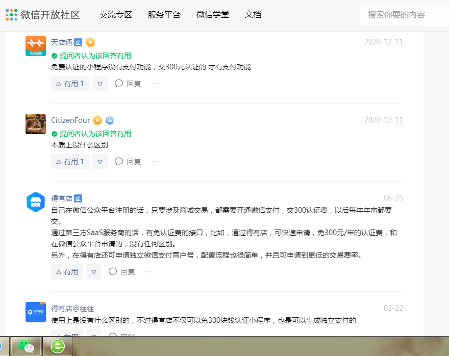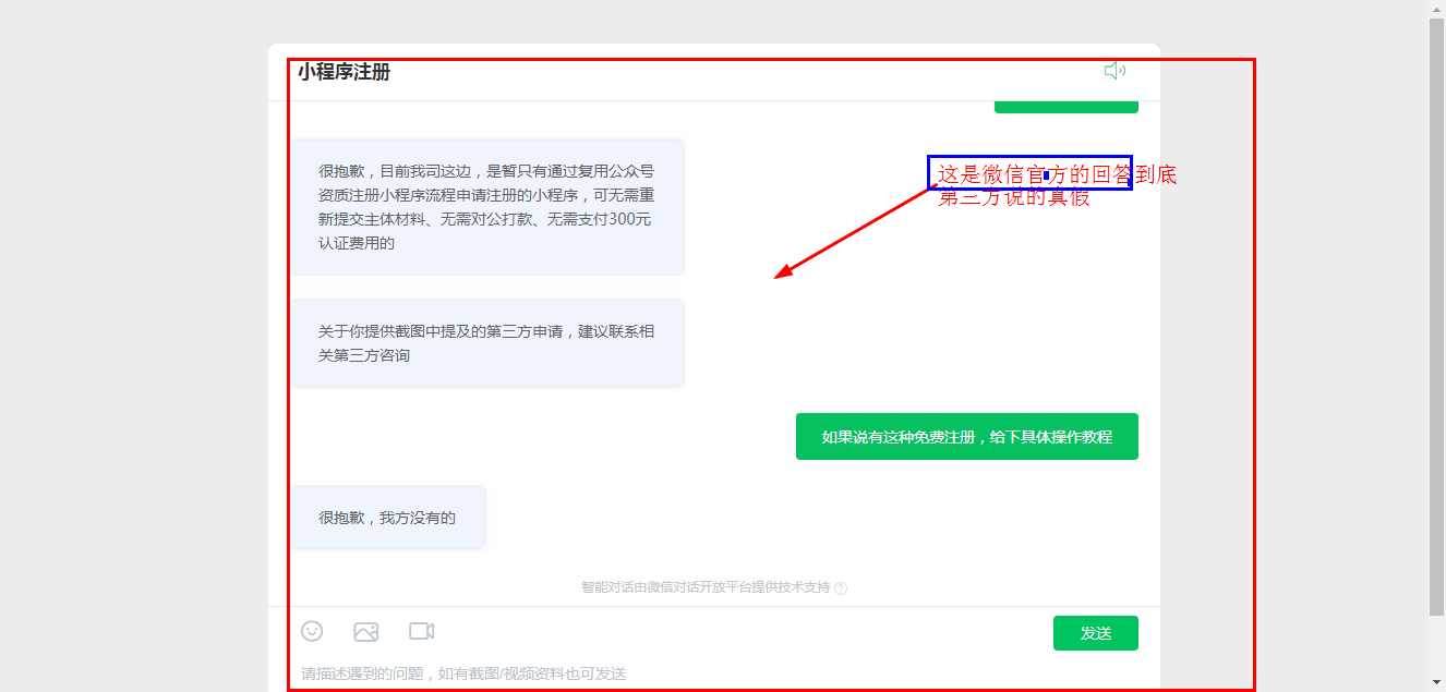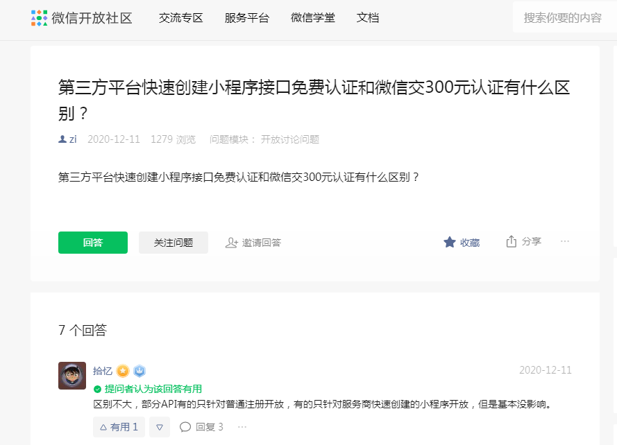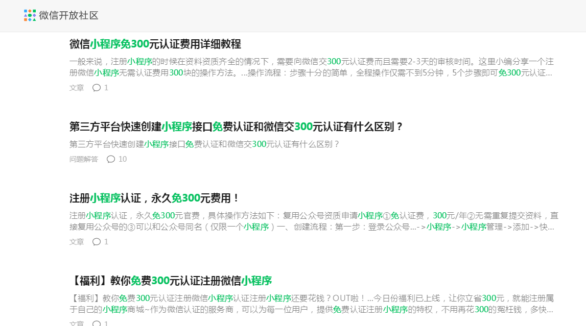 官方就不出来说明白吗?关于“第三方免300元认证微信小程序的问题”是真是假?啥样的第三方?怎么成为这个第三方?如果是假的不应该出来辟谣吗?官方整天也不知在干嘛?还有解释明白,第三方免费认证的和花300元认证的啥区别?第三方免300认证的能不能审核发布、能不能对接支付功能?