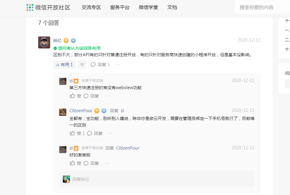 截图里我说的是API方面区别不大,大部分通过第三方服务商注册的小程序和普通小程序没啥区别,至于支付的话不存在需要300块认证的普通方式注册的小程序才能开通。目前通过第三方注册的小程序管理员也只能绑定5个小程序,但是主体还是依然最多支持注册50个小程序。