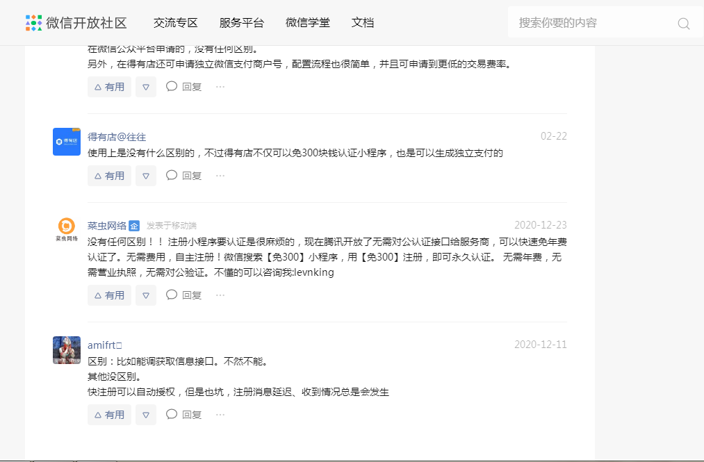 截图里有我回复,我来报个到,免300注册和300注册基本都一样,免300注册可以自行在小程序后台解除第三方服务商成为一个独立的小程序
