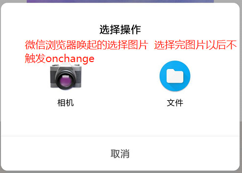 上面截图 是MI5 分别在 系统浏览器 以及 微信浏览器的 同一个页面点击input框 唤起选择图片的截图 为什么会有这种差异 在mi8 上无论是微信还是内置浏览器都是图1 可以触发onchange