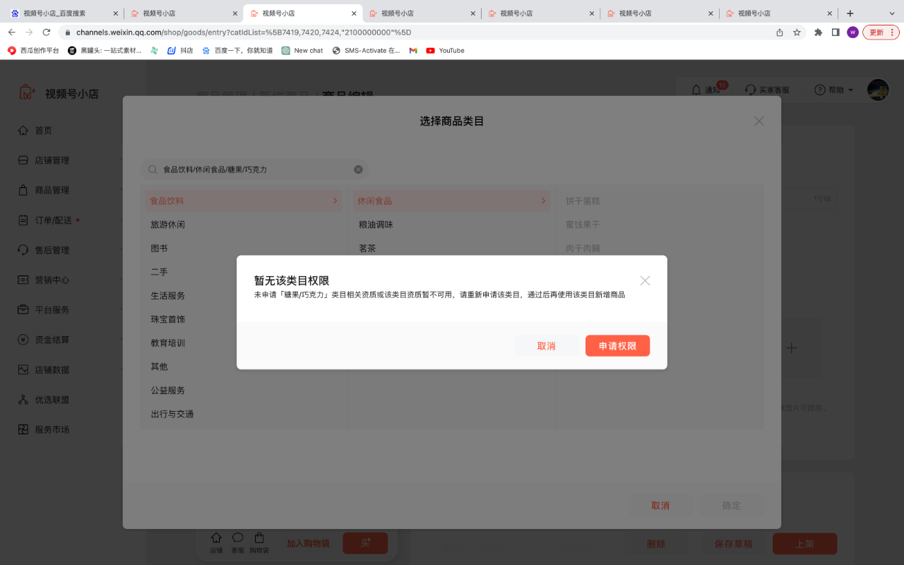 提供一下已经申请通过的类目截图看一下,马赛克一下