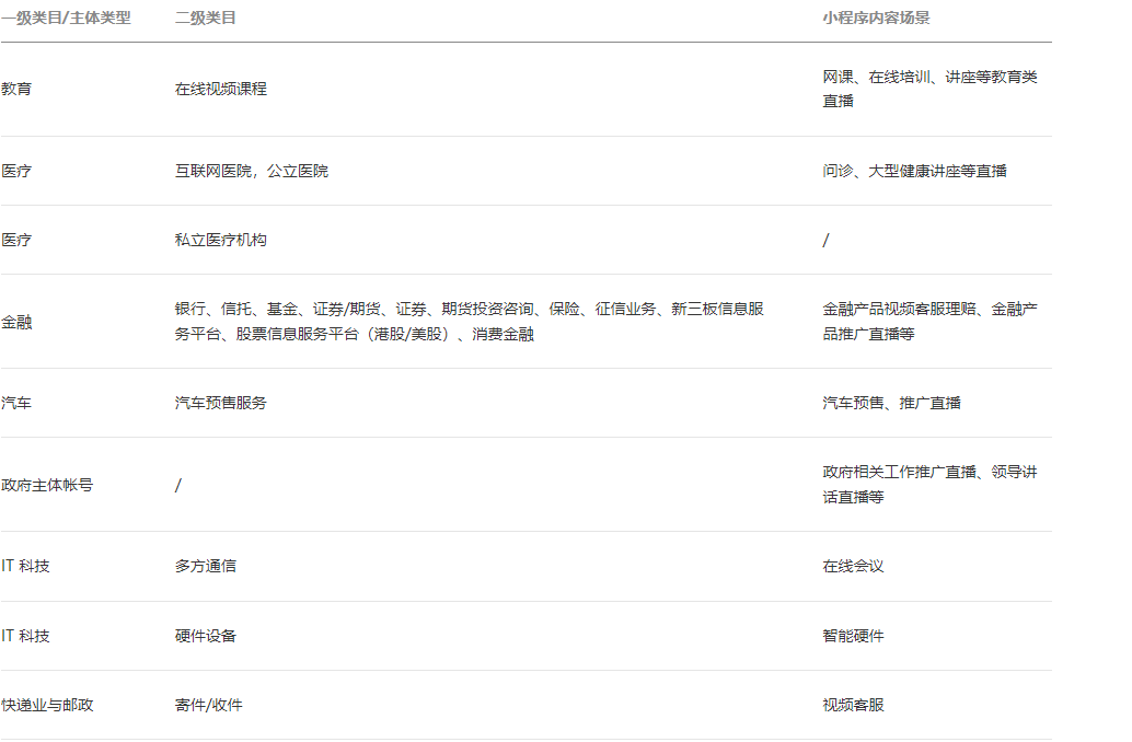 注:小程序实际的服务内容涉及的对应类目,需以用户实际提交代码审核判断为准