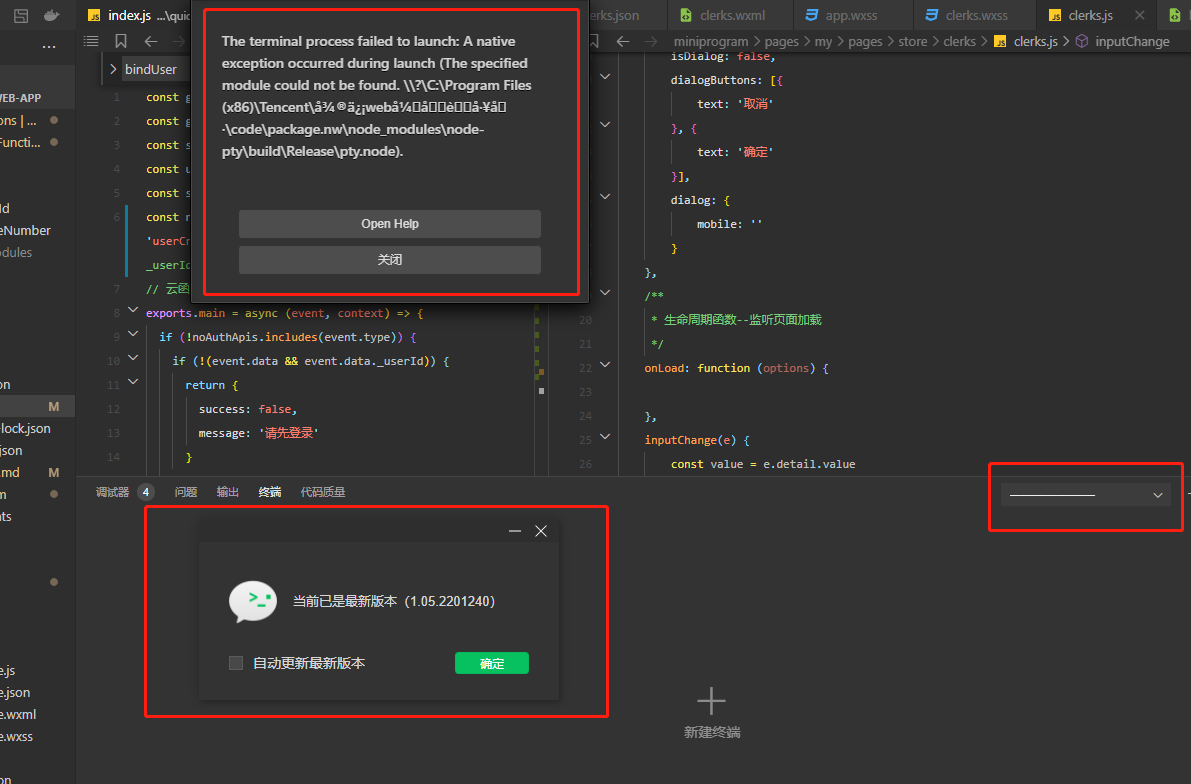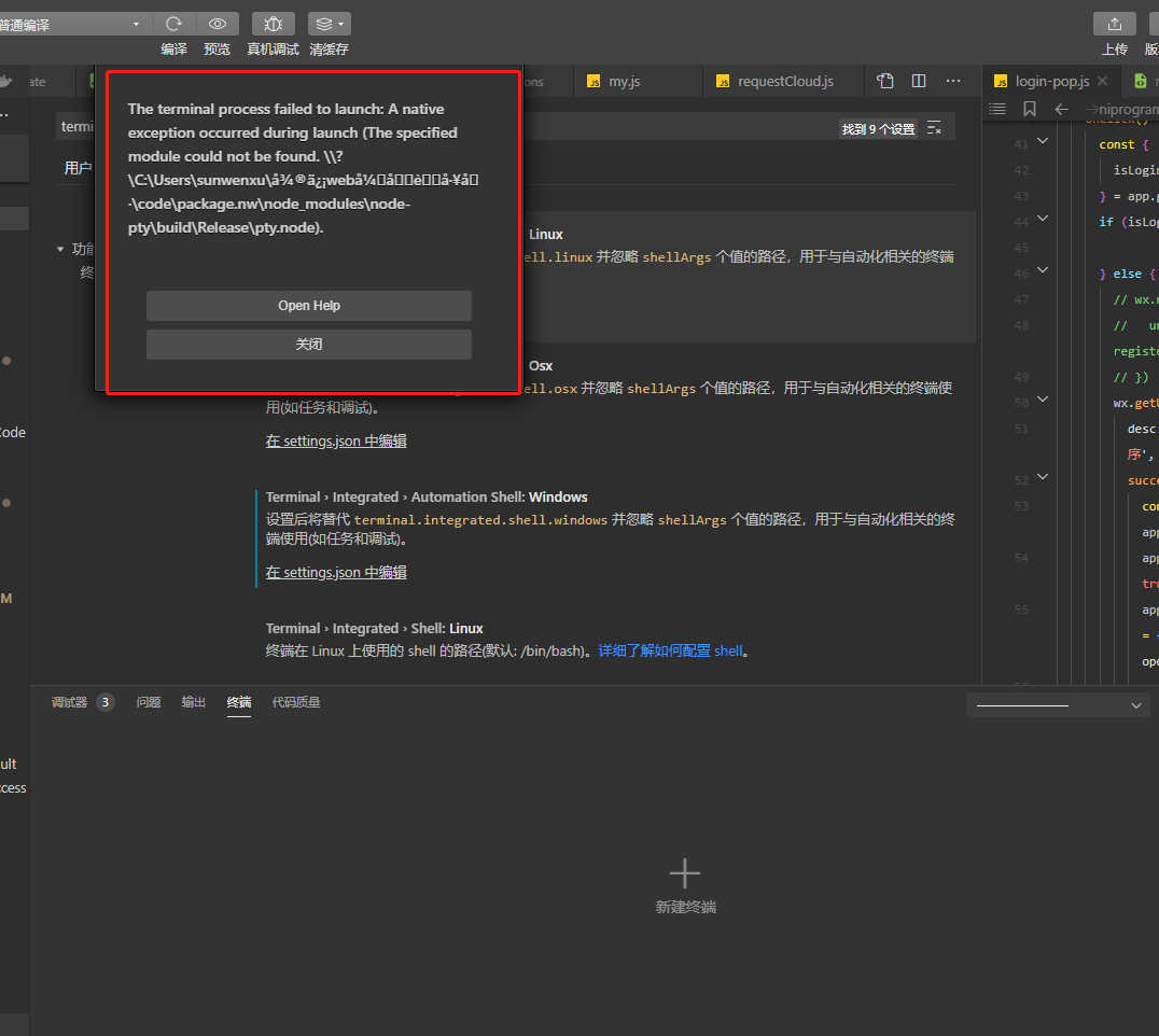 我的vscode就可以打开终端,微信开发工具怎么也打不开,有遇到这种问题的小伙伴吗?