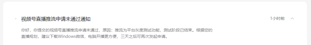 视频号申请了直播推流权限,消息通知未通过,原因是建议直播规划要详细,这个要怎么详细啊?同样的直播规划,之前别的视频号上申请都能通过,这次居然不行了,而且现在还要3天之后才能再申请,这个有办法解决吗?找不到客服,这个急啊,还有4天就要开播,现在要3天后才能申请,很赶啊,有客服能帮忙吗?