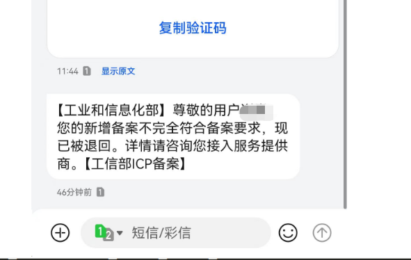 尊敬的用户XXX您的新增备案不完全符合备案要求,现已被退回。详情请咨询您接入服务提供商。