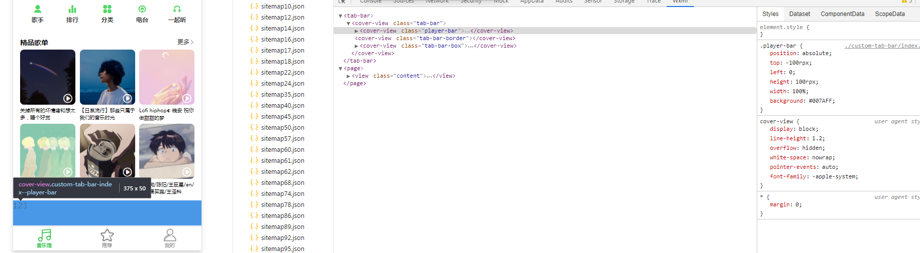 player-bar绝对定位,将tab-bar的overflow属性置为unset,开发工具上显示正常,真机上却不能显示。如图所示。